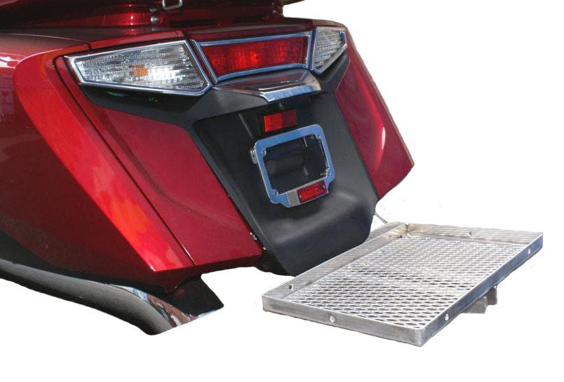 These Lightweight Aluminum Cooler Racks Measure 11' X 16" X 1" And The Length Of The Support Bar Underneath Measures 18". These Racks Work On The 2012 Up GL1800 Goldwings With The Add On #45-1806A Vertical Trailer Hitch With A 1 1/4" Opening. These Light Weight Construction Racks Hold Heavy Loads And Makes It Easy To Put On And Off, And Will Last A Long Time Without Rusting. Also Come In Black #678-039B And Are Made In US.