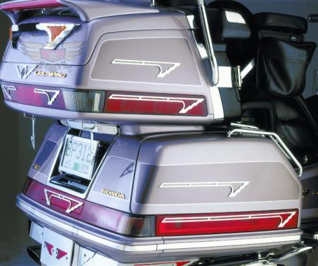 Decorative tapered chrome steel accent strips give the feel of winged flight. Available in seven lengths to be used as fairing, fender or side cover accents on both touring and cruiser motorcycles, trikes and trailers. Attaches with double sided tape provided. U.S. Design Patent #D442,121.