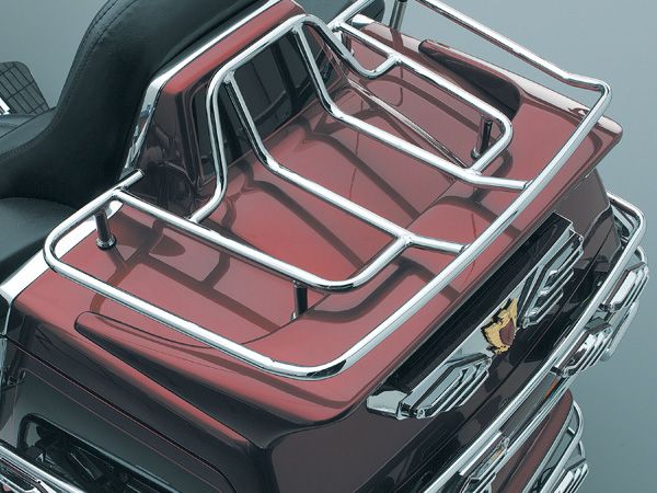 No other rack on the market compares with this gleaming chrome trunk addition. It includes the Küryakyn exclusive ISO-Mount Kit which reduces stress at the mounting points & lessens the possibility of cracking or damaging the lid. Works with or without the OEM spoiler. Fits: All GL1500 Models