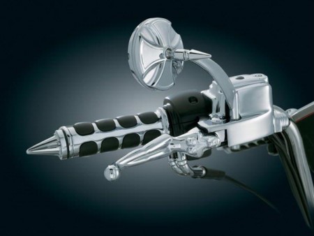 For your chopper lifestyle we have finely crafted these Maltese Cross design mirrors. The flat glass is surrounded by a heavy, protruding bezel & accented by a knurled edge for a complete outlaw look. Scalloped mirror arms extend from the bars with a swoop & are capped off by a stiletto styled end. The bezel is easily removed to access & adjust the tension mechanism if necessary. Hardware for a variety of H-D mounting applications is included.