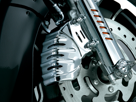• Chrome-plated stamped steel covers bolt-on in minutes regardless if the bike has ABS or not